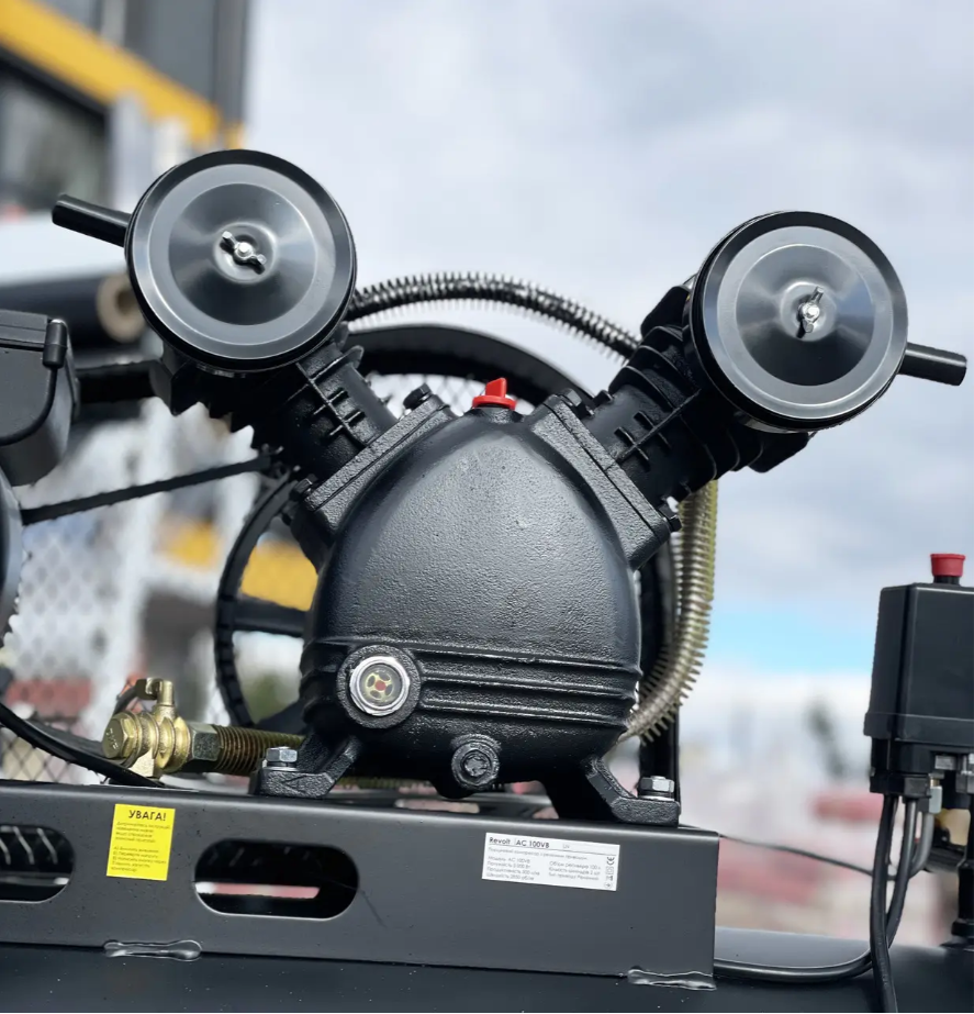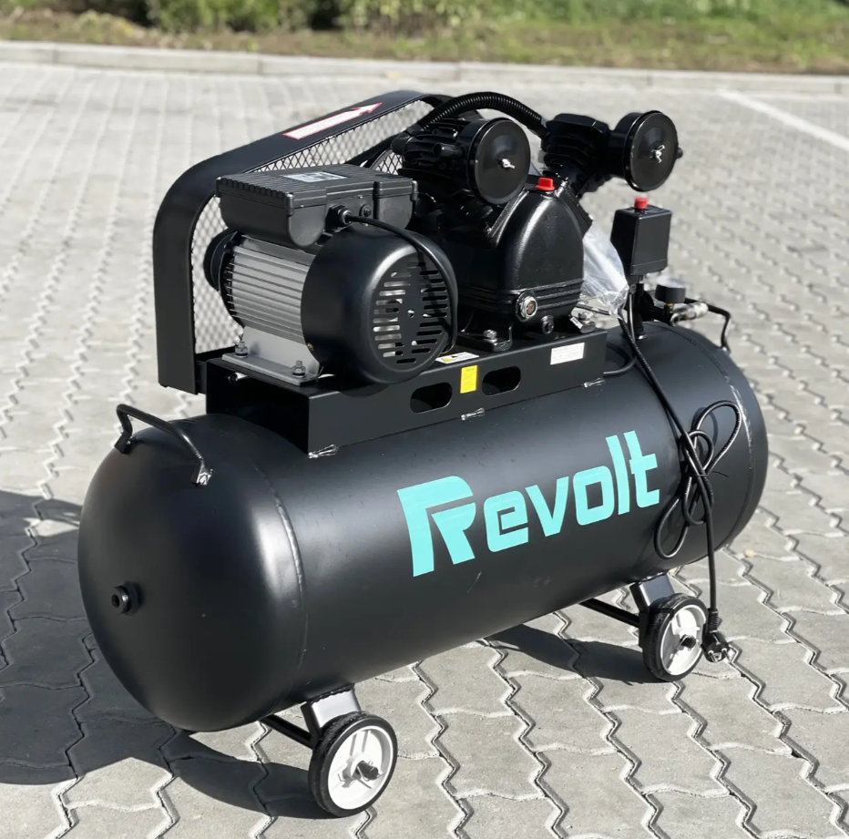 Компресор Revolt AC 100VB – це потужний ременний поршневий компресор, створений у Швеції компанією Revolt. Його два циліндри з чавуну забезпечують довговічність та ефективне охолодження, що сприяє безперервній роботі. Корпус виготовлений з чавуну, що надає стійкості до пошкоджень та оптимального відведення тепла.