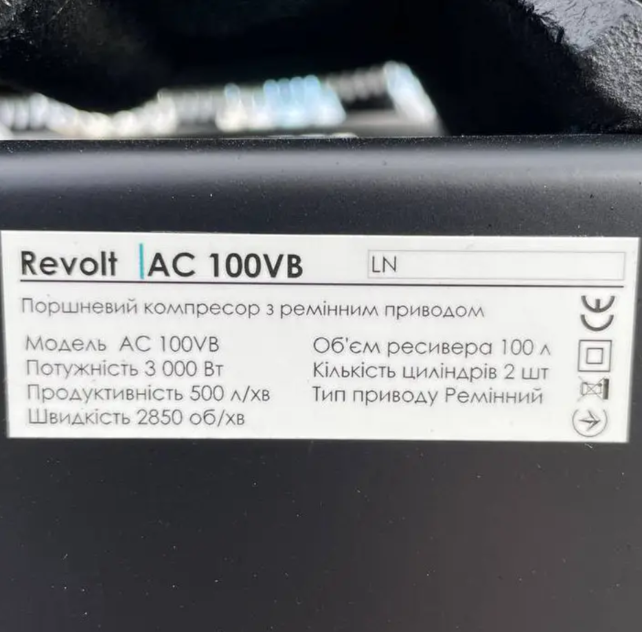 - Об'єм ресивера: 100 літрів
