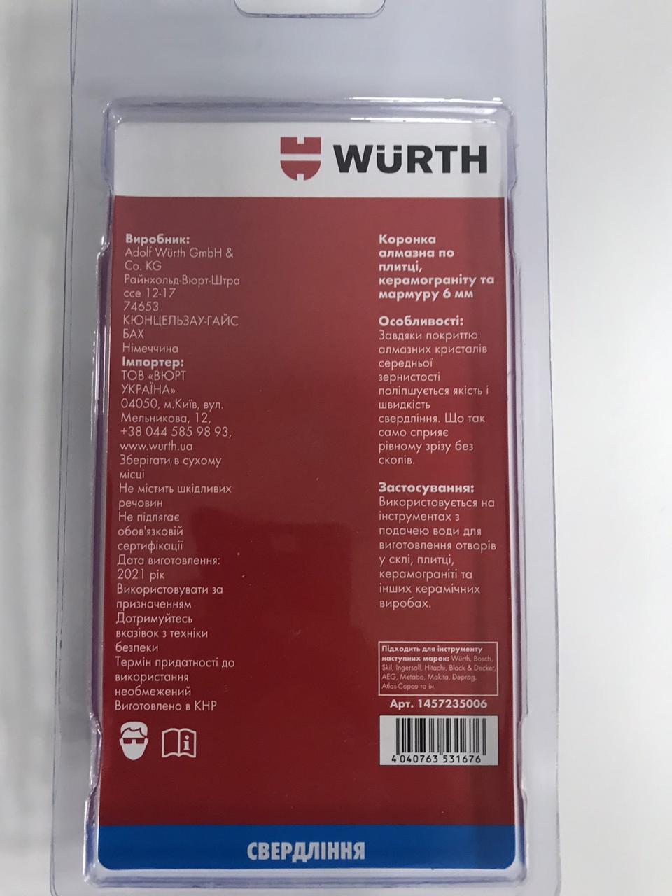 Коронка алмазна по плитці, керамограніту та мрамору Wurth 6 мм Щоб купити Коронку алмазну в Києві від інтернет-магазину king-tools.com.ua необхідно оформити онлайн заявку або зателефонувати за номерами, які вказані на сайті. Також ви можете замовити інші товари від інтернет-магазину king-tools.com.ua за найкращою ціною та оформити доставку по всій Україні: Харків, Київ, Одеса, Запоріжжя, Львів, Дніпро, Рівне, Івано-Франківськ та інші міста України.