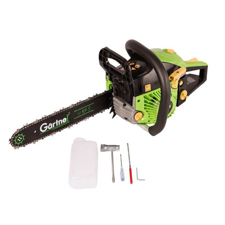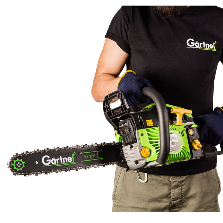 - Легкість та компактність. При вазі всього 6 кг (нетто) бензопила Gärtner CSG-3040 легко маневрує навіть в умовах обмеженого простору. Це робить її зручною для використання під час роботи на висоті або в складних умовах.