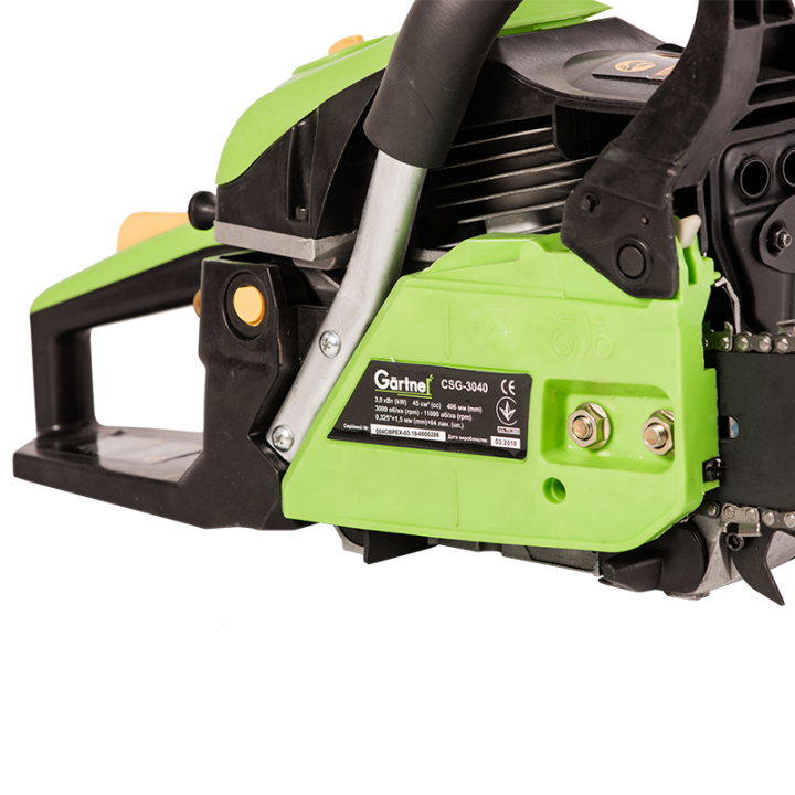 Пила бензинова CSG-3040 призначена для пиляння дерев. Принцип роботи виробу полягає в почергове різання лезами ланок ланцюга, що рухається в напрямних з великою швидкістю.