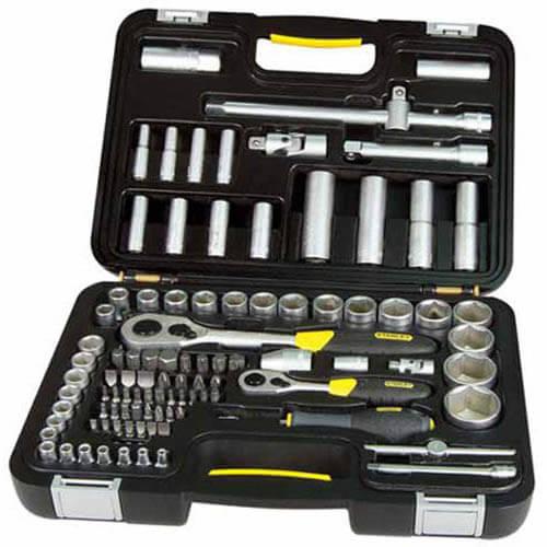 Stanley 1-94-668 – професійний набір 1/2", 1/4" торцевих головок, біт та аксесуарів з 96 предметів із хромованадієвої сталі. Підходить для ремонту та технічного обслуговування автомобілів.