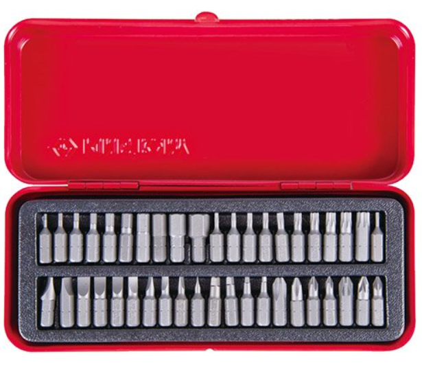 Комплект включає біти з хвостовиками 1/4", що забезпечує зручність та універсальність у використанні з різними типами інструментів. Вставки (біти) спеціально створені для задоволення найвибагливіших потреб та пропонують широкий спектр розмірів та типів, щоб задовольнити всі ваші професійні потреби.