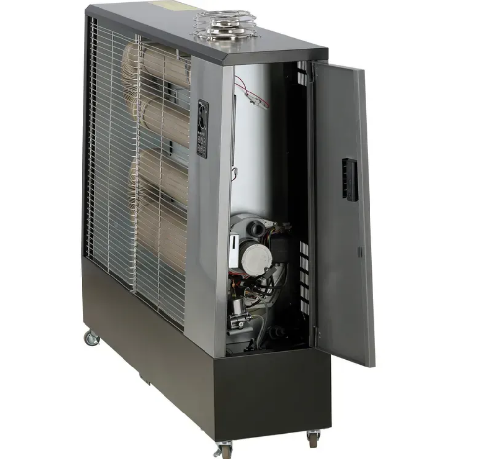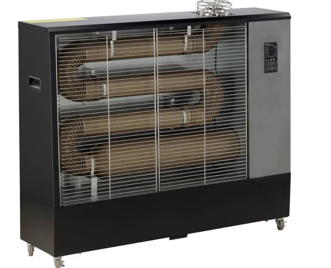 Портативний інфрачервоний оливний нагрівач YATO YT-99763, призначений для ефективного обігрівання громадських приміщень. Він сприяє швидкому досягненню комфортного теплового комфорту в майстернях, цехах і складських приміщеннях, а також ефективному осушенню стін під час ремонтних і будівельних робіт.