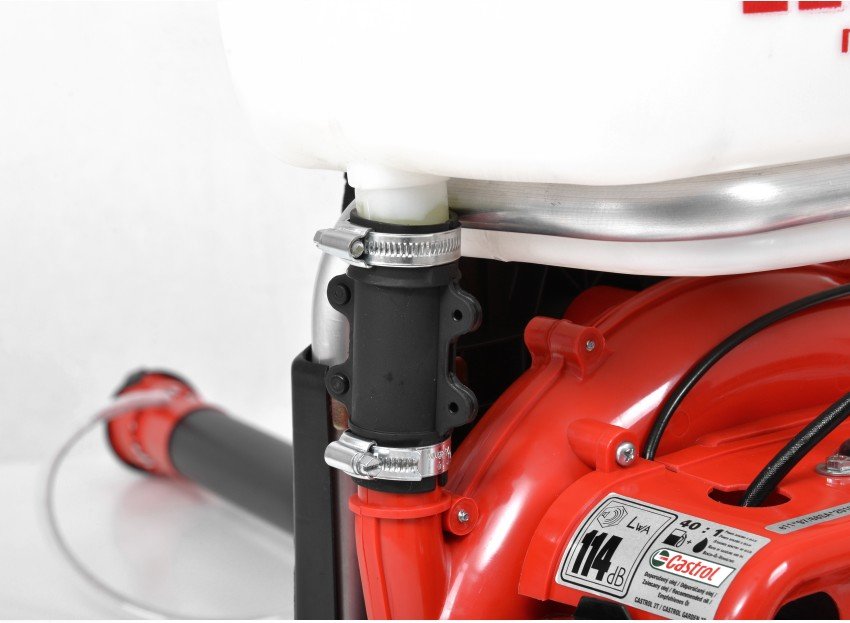 У комплект поставки моторного обприскувача входять конічні грати, дефлекторні грати та подвійні дефлекторні грати. Потік повітря можна плавно змінювати при внесенні добрив у гранулах або при розкиданні солі. Регулювання тиску та різні форсунки дозволяють обприскувати різні види рослин навіть на пересіченій місцевості.