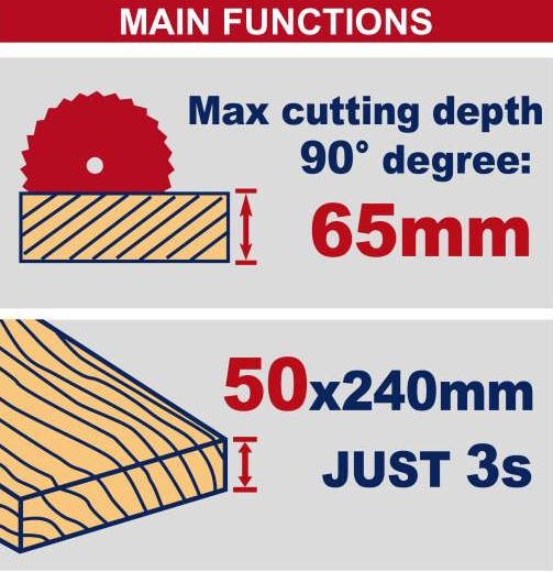- Глибина пропила при 90°, мм: 65 мм