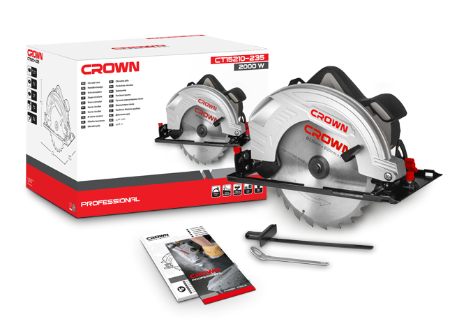 Ергономічна конструкція з м'якою накладкою на рукоятці, фіксатор шпинделя, блокування вимикача та регульовані параметри різу роблять роботу з інструментом зручним та безпечним.Циркулярна пилка Crown CT15210-235 підходить для:
