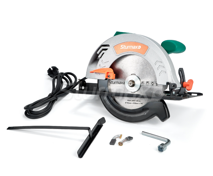Sturmax CSM50190 – універсальна, продуктивна циркулярна пилка з діаметром пильного диска 185 мм. Призначена для здійснення поздовжніх та поперечних різів у деревині різної твердості, та її похідних, а також у пластиці. Модель оснащена 1600 Вт електродвигуном і високоміцним редуктором, що дозволяє впевнено розпилювати матеріал на максимальну глибину до 59 мм. Завдяки функції регулювання глибини різу шляхом зміни положення опорної платформи, користувач може налаштувати і зафіксувати бажану глибину занурення диска. Також передбачена можливість виконання кутових різів. Точне налаштування інструменту перед використанням, забезпечує розмічена у градусах шкала. Легкість та простоту заміни оснастки гарантує наявність блокатора вала шпинделя. Для максимальної безпеки користувача під час роботи, модель отримала посилений алюмінієвий кожух, а також захист від ненавмисного запуску. Додаткову зручність під час обслуговування забезпечує функція швидкого доступу до щіток, що дає змогу робити їхню заміну без розбору елементів корпусу. У штатну комплектацію моделі Sturmax CSM50190 входять: пиляльний диск (встановлений на інструменті), ключ, паралельна напрямна та комплект запасних щіток.