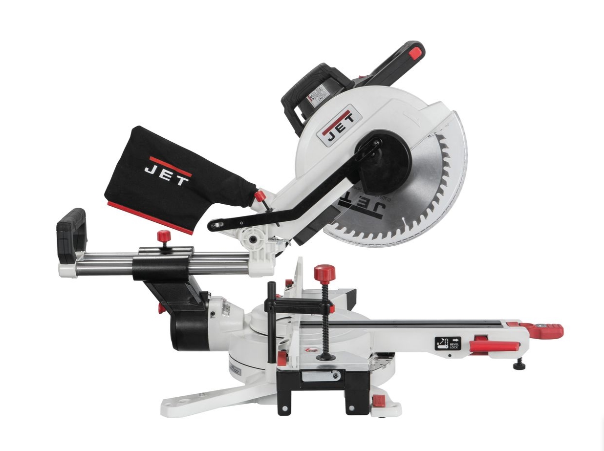 JWMS-12X — торцювально-усова пила з розширеними можливостями налаштування та регулювання, оснащена великим (305 мм) диском. Найважливіша перевага цієї моделі - "симетричний" механізм нахилу, що дозволяє робити скоси на кут до 45 ° і в праву, і в ліву сторону. При роботі з деталями, які не можна перевертати, а це все плінтуси та більшість інших декоративних накладних елементів, цю перевагу переоцінити важко. Але це ще не всі унікальні переваги верстата: механізм повороту столу має розширений діапазон: вліво до 52°, а вправо до 60°, що знову ж таки дуже важливо, оскільки дозволяє робити поширений 30-градусний гострий кут із опорою заготовки на довгу сторону, а не її торець.