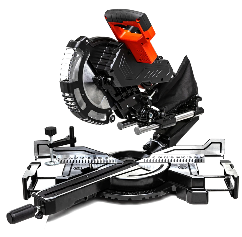 Пила торцювальна GTM HM1046 поставляється в картонній упаковці з пиляльним диском, розширювачами для столу, притискною струбциною і пилозбірником.
