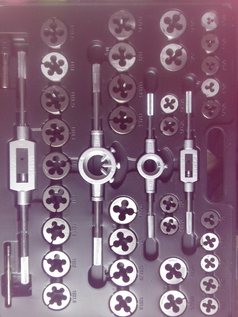 2x0,4; - 3x0,5; - 4x0,7; - 5x0; - 6x0,1; 6x0,75; 7x1; 8x0,75; 8х1,0; 8х1, 25; 9х0, 75; 9х1,0; 9х1, 25; 10х0,75; 10х1,0; 10х1, 25; 10х1,5; 11x0,75; 11x1; 11x1,25; 11x1,5; 12x0,75; 12×1,0; 12×1,25; 12×1,5; 12×1,75; 14×1,0; 14×1,25; 14×1,5; 14×2,0; 16×1,0; 16×1,5; 16×2,0; 18х1,5. Плашка - відноситься до різьбонарізного інструменту і призначена для нарізування зовнішньої різьби. Мітчик ― відноситься так само до різьбонарізного інструменту, але для нарізування внутрішнього різьблення. Плашки та мітчики виконуються з легованих сталей (9ХС) та швидкорізальних сталей (Р6М5К8, Р6М5К5, Р6М5, Р18). Хімічний склад швидкорізальної сталі Марка сталі C Cr W Mo V Co Р6М5 0,82-0,90 3,8-4,4 5,5-6,5 4,8-5,3 1,7-2,1 < 0,50 Області застосування: Плашка – це регульований різьбонарізний інструмент з різьбовим отвором та канавками для відведення стружок. За допомогою плашок на металевих виробах нарізається і калібрується зовнішнє різьблення. Мітчик – це регульований різьбонарізний інструмент з різьбовими канавками для відведення стружок. За допомогою мітчика нарізається і калібрується внутрішнє різьблення на металевих виробах. Переваги: Оскільки нагрівання плашок або мітчиків зі швидкорізальної сталі (або їх замінників) залишається в допустимих межах, це дає можливість працювати без їх охолодження. 6201960Плашки та мітчики19Промінструмент