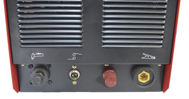 На передній панелі розташовані рознімання для підключення пальника, газу, кабелю маси. Тумблер перемикання режимів, датчик, що повідомляє про перегрівання, також знаходяться на передній панелі агрегату. На задній панелі є вихід підключення потужності компресора. Обладнання має потужний вентилятор для охолодження внутрішніх деталей пристрою. Апарат відрізняється якісним складанням, без люфтів.