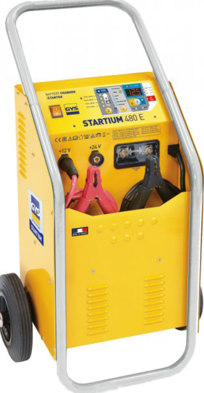 STARTIUM 480 E 12/24 В. Автоматичний пуско-зарядний пристрій, запуск навіть при дуже розрядженому акумуляторі від 1 В, контроль від надлишкового споживання струму під час старту, мікропроцесорне керування. Автоматичне визначення пуску автомобіля (немає необхідності в дистанційному перемикачі режиму "пуск").