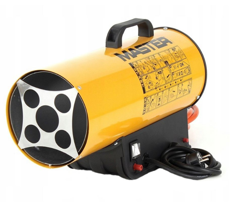 MASTER BLP 17 M – це сучасне рішення для автономного та ефективного прогріву будівельних майданчиків, складів та ангарів Підключення проводитися до газового балона через редуктор Живлення для обертання вентилятора надходить від зовнішнього джерела Потужність можна регулювати від 10 до 16 кВт, це здійснюється шляхом обертання спеціальної шайби Продуктивність складає 300 кубічних метрів гарячого повітря за одну годину Споживання газу в максимальному режимі дорівнює 1.16 кг за годину Якісні матеріали, з яких виготовлена теплова гармата, визначають довгий потенційний термін служби Підпал ручний, для цього необхідно одночасно затиснути дві кнопки, п’єза елемента та подачі газу Вбудована термопара та запобіжний клапан забезпечують необхідний рівень безпеки під час роботи Передбачено автоматичне вимкнення.