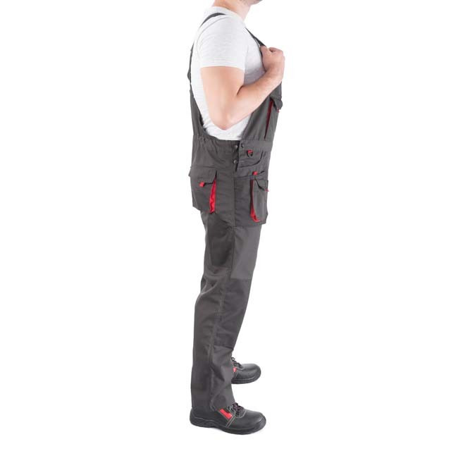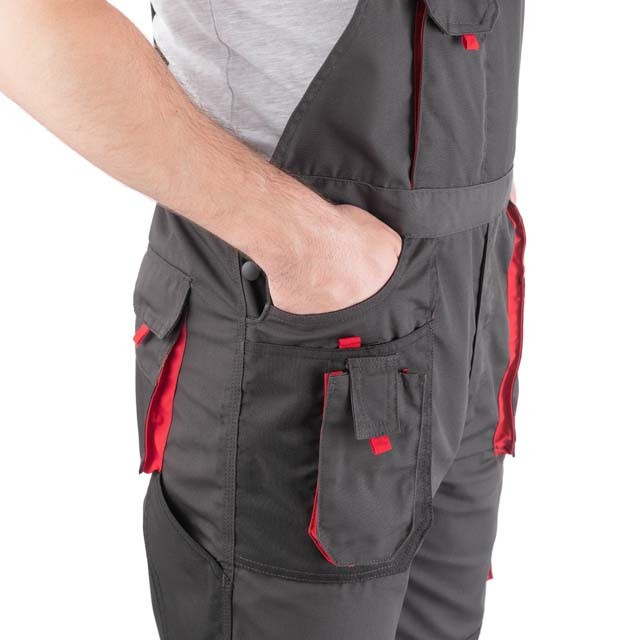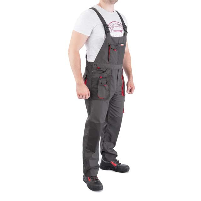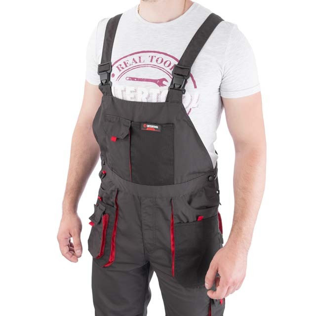 Напівкомбінезон пошитий із міцного та зносостійкого матеріалу, що і куртка зі штанами: 80% поліестер, 20% бавовна із щільністю 260 г/м². Відмінно захищають працівника від забруднень та механічних пошкоджень. Безліч накладних та прорізних кишень дозволяють розвантажити руки майстру та виконувати роботу зі зручністю та швидким доступом до всіх інструментів. 11 функціональних міцних кишень для зберігання інструментів і аксесуарів Регульовані лямки з вставкою з еластичної гумки для налаштування необхідного розміруолнію з вітрозахисним клапаном зручність у роботі на твердих поверхнях