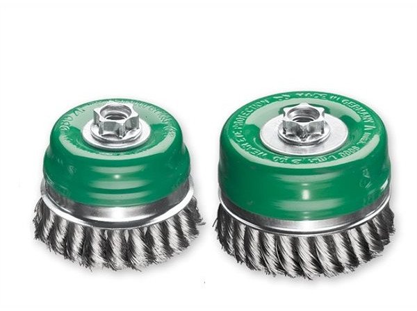 Щітка чашкова Lessmann 486717, 100хМ14х2,0, скручена джгутами нержавіюча дріт 0,35 мм, 9000 об/хв Характеристики: Розмір: 100хМ14х2,0 мм Скручений джгутами нержавіючий дріт 0,35 мм 9000 об/хв Країна-виробник: Німеччина Чашкові джгутові щітки відмінно підходять для виконання важких зачистних робіт. підготовка металевих поверхонь до фарбування або видалення шлаку, іржі, окалини та залишків бетону. Виконання з діаметром 80, 100 і 125 мм мають до того ж практичне застосування стопорне кільце: воно стабілізує щітку і з легкістю видаляється після стирання джгутів, звільняючи при цьому наступні 20 мм їх робочої довжини. Щітки з нержавіючим дротом можна легко відрізнити по зелених корпусах або корпусних шайбах.