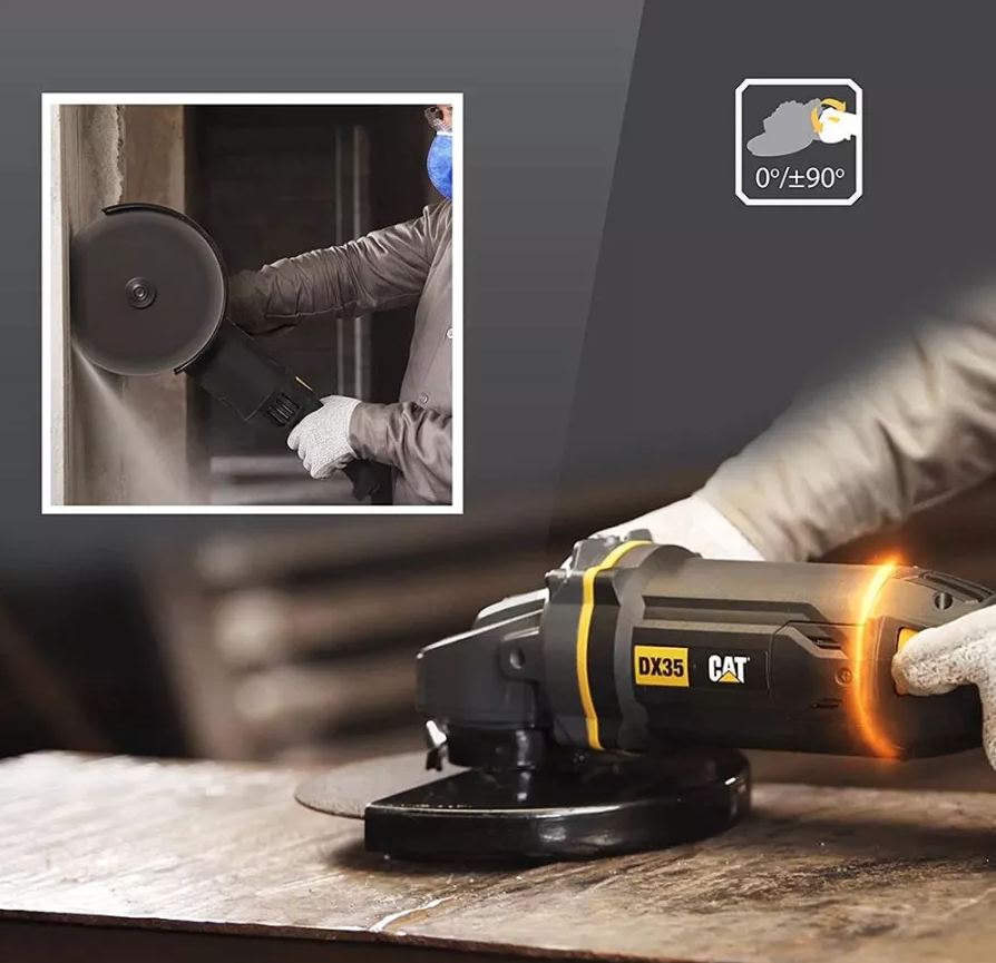 CAT DX35 це ідеальне поєднання зручного функціонального виконання та безпеки вашої роботи. Інструмент має плавний старт, а швидке налаштування захисного кожуха дозволяє миттєво вибрати його потрібне положення та уникнути травм. Антивібраційна ручка зменшує вплив вібрацій на ваші руки. Працюйте без утоми навіть при тривалому використанні. Шарнірне з'єднання шнура живлення дозволить уникнути його закручування під час роботи.