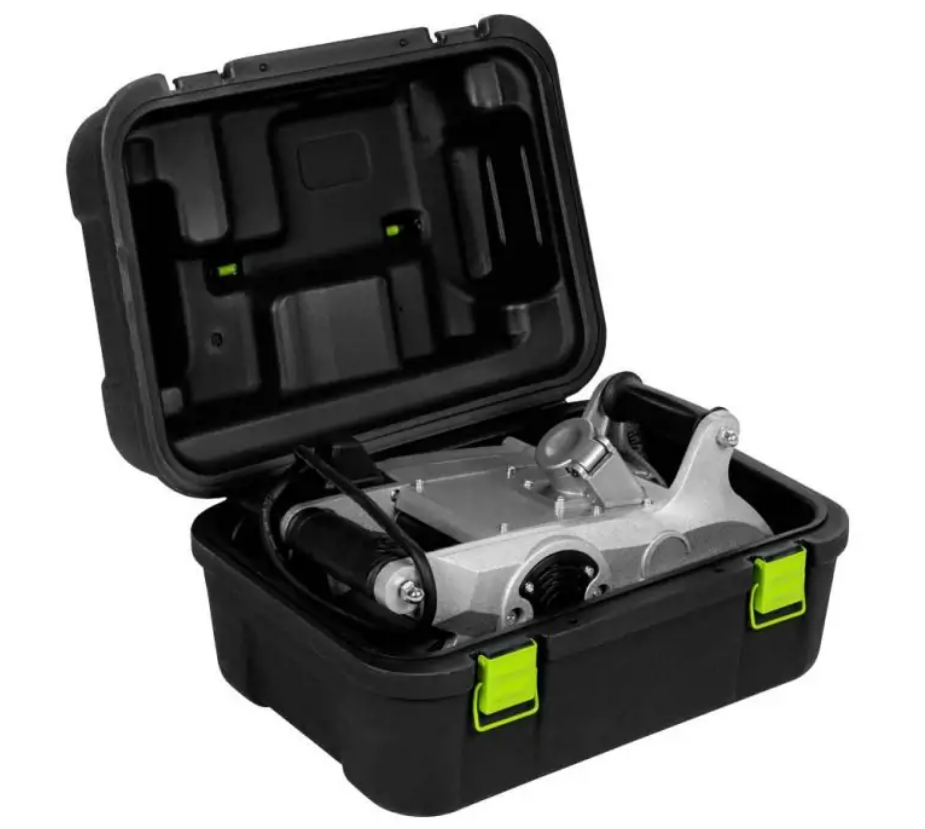 Двигун потужністю 1,1 кВт забезпечує ефективне штроблення бетону, цегли, газоблоків та інших твердих матеріалів, має плавний старт і захист від перевантаження. Кнопка запуску оснащена блокуванням від випадкового ввімкнення. Для комфортної роботи ця штробильна машина має патрубок для підключення будівельного пилососа. Дві рознесені ергономічні ручки з протиковзаючими накладками та віброізоляцією забезпечують точний контроль положення інструменту і зменшують втому при тривалій роботі.