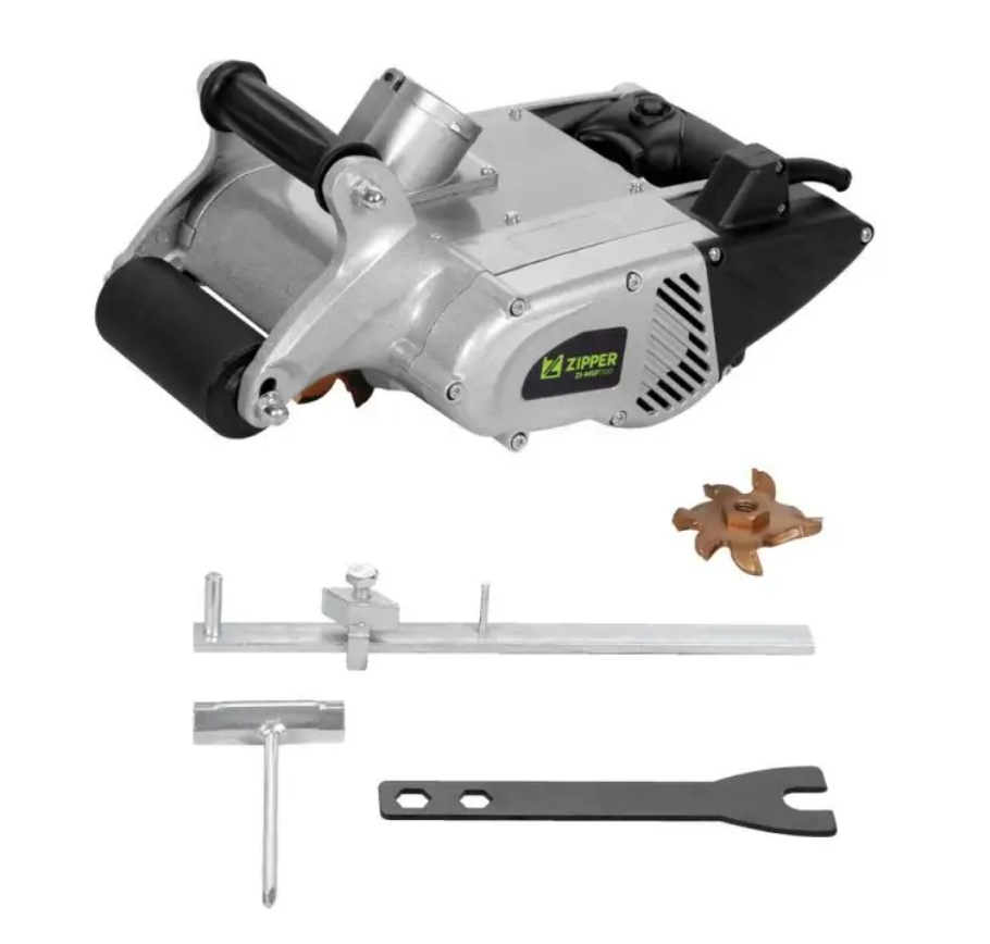 Штроборіз ZIPPER ZI-MSF1100 - це вузькоспеціалізоване обладнання для створення каналів (штроб) у стінах, підлозі чи стелі. Використовується при прокладанні електропроводки, кабелів, труб водопостачання та опалення, систем вентиляції й інших інженерних комунікацій. Працює від звичайної побутової електромережі 230 В. В комплект поставки входять дискові фрези Ø75 мм та Ø83 мм, що дозволяє виконувати штроби шириною 25 мм або 35 мм. Глибина штроблення регулюється шляхом зміни вильоту фрези відносно підошви. Максимальна глибина штроби становить 30 мм.