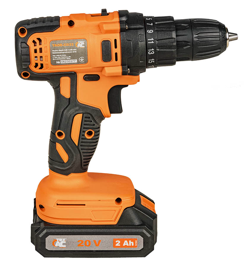 Живлення від акумулятора робить Tex.AC TAOE-CD33 незалежним від проводів та стаціонарних джерел живлення. Шуруповерт оснащений 20-вольтовим літій-іонним акумулятором з ємністю 2 А·год, що забезпечує тривалу роботу та стабільну потужність. Літій-іонна батарея відрізняється довговічністю та швидкою зарядкою, що дозволяє мінімізувати простої в роботі.