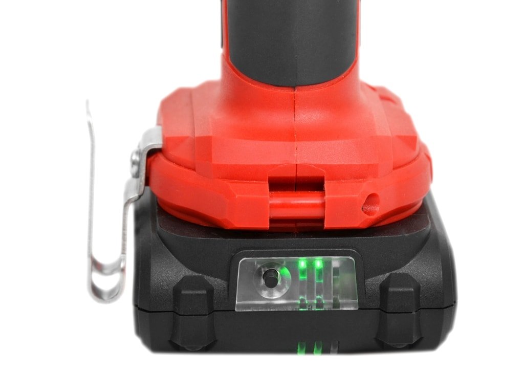 Поставляется с 2-мя аккумуляторами, быстрым зарядным устройством, 6-ю наконечниками для отверток, 6-ю сверлами и магнитным держателем для бит, клипса для подвешивания на поясе.