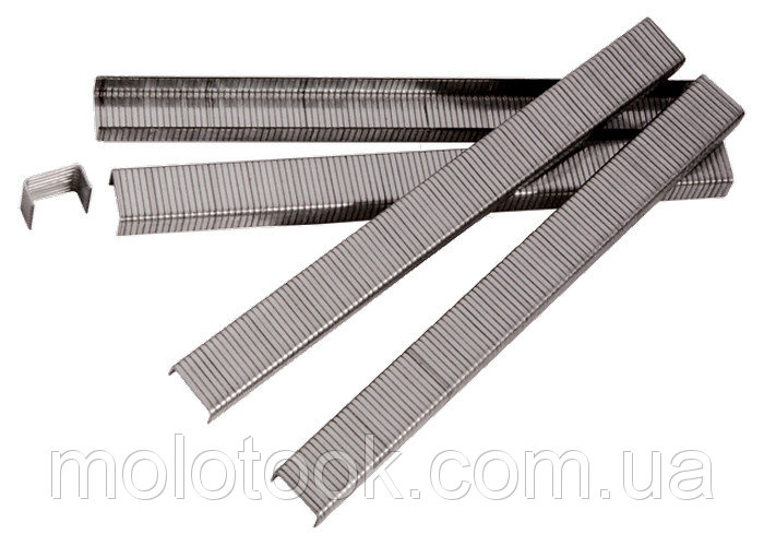 Кількість в упаковці 5000 шт. ширина. – 1,2 мм, товщина. - 0,6 мм, ширина - 11,2 мм Виготовлені з вуглецевої сталі. Мають нікельоване покриття. Скоби призначені для кріплення матеріалу до поверхонь за допомогою пневматичного степлера. Виробник: MATRIX