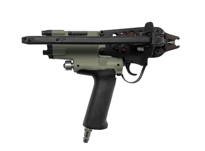 Промисловий пневмопістолет скобозабивний під С-скобу 16 калібру Woodpecker C760A з коротким носиком та закриттям скоби 3-4 мм, місткість магазину 100 скоб. Інструмент має надійний та міцний алюмінієвий корпус з прогумованою ручкою для комфортної роботи. Внутрішня сторона скоби 12,5 мм, а зовнішня – 16,9 мм. Пневматичний кільцевий пістолет C760A має загартовані затискні губи для стійкості затискача, чутливий курок і потужний циліндр для високої продуктивності.