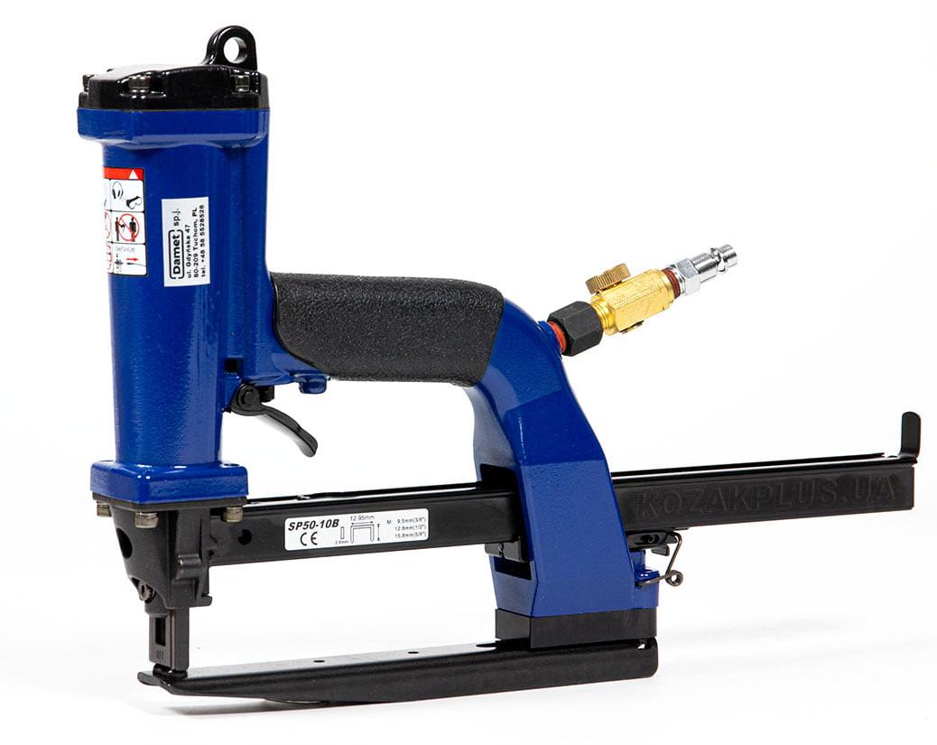 Степлер Damet SP-50a - універсальний пневматичний ручний зшивач. Зшивач SP-50a комплектується з коваделком типу "A" , завдяки якому може застосовуватися для зшивання лотків та невеликих коробок з використанням сталевих скоб. Виробництво компанії Damet, Польща.