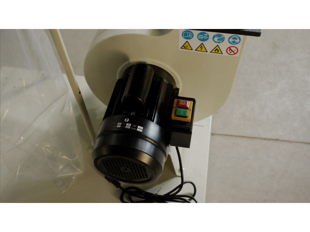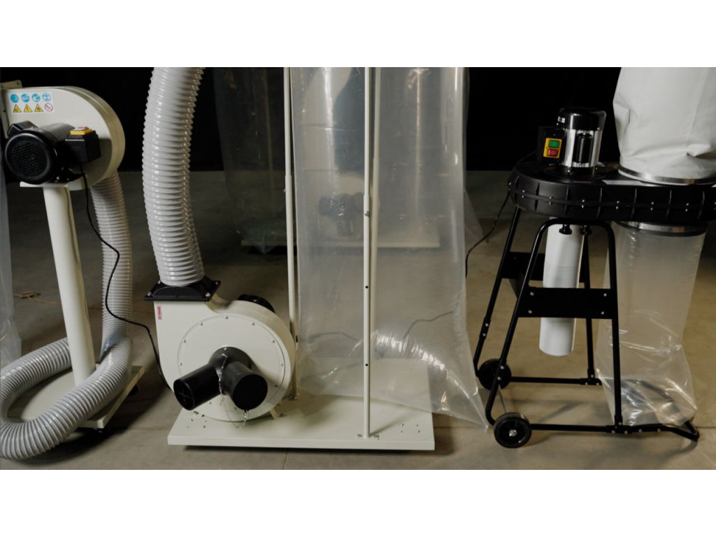 Двигун потужністю 1,5 кВт забезпечує продуктивність 2480 м3/год, завдяки чому аспірація чудово справляється як з дрібними, так і з великими фракціями відходів. Розташований у верхній частині поліестеровий фільтр відповідає всім європейським стандартам.