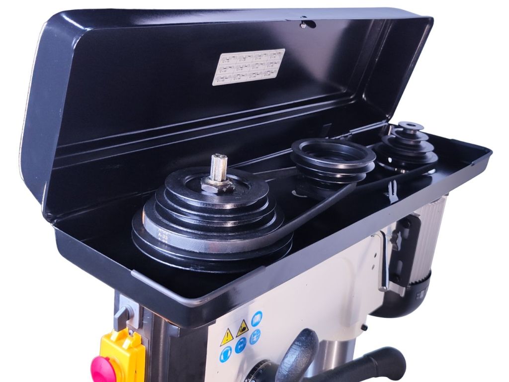 - Багатоступінчаста система швидкостей: 12 швидкостей шпинделя дають можливість гнучко адаптувати верстат під конкретні завдання. Швидкісний діапазон обертання від 180 до 2740 об/хв дозволяє працювати з різними матеріалами та забезпечує точність свердління навіть у найскладніших умовах.