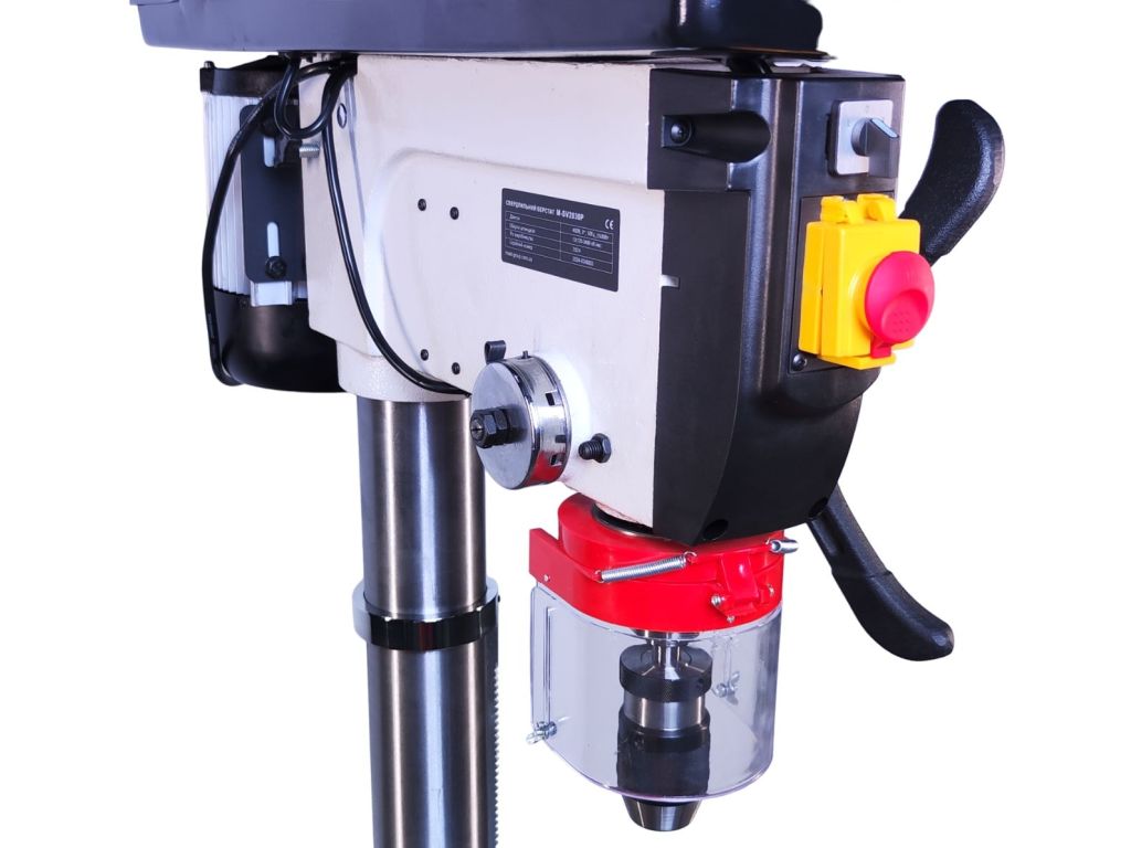 - Універсальний патрон: Діаметр патрона 16 мм і конус шпинделя MK2 дозволяють встановлювати різні типи свердл, що робить цей верстат універсальним інструментом для виконання різних видів свердлильних робіт.
