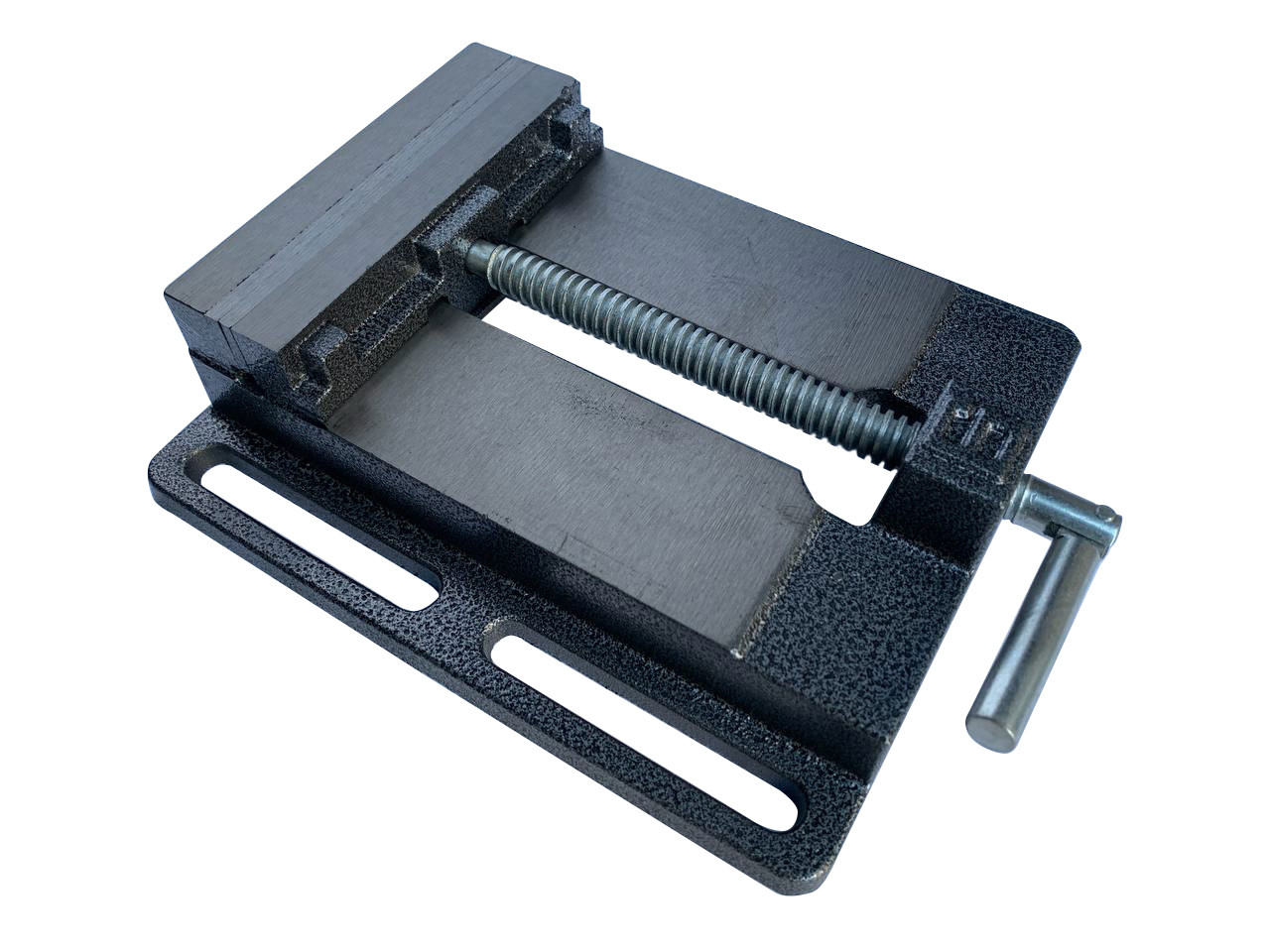 Тиски із шириною губок 150мм. Підходять для свердлувальних, фрезерних робіт на невеликих верстатах. Тиски виконані з чавуну. Губки мають насічку для надійної фіксації заготівлі. Максимальне розкриття губок 150 мм. Висота губок 25 мм.