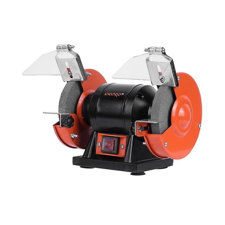 Заточувальний верстат Dnipro-M BG-12 – потужний та функціональний електроінструмент від українського виробника. Широко застосовується у роботах пов'язаних із заточуванням та шліфуванням поверхонь та інструментів, вирівнювання, а також видалення припусків. Компактні розміри верстата, застосування шліфколів стандартних розмірів (125х16х32) та безпека в роботі – ключові особливості інструменту. > Верстат оснащений потужним електромотором 200 Вт, працює від побутової мережі 220 В і здатний досягати максимально високої швидкості до 2950 оборотів/хвилину. Міцна металева конструкція верстата підвищує термін експлуатації, а встановлені захисні кожухи захищають оператора від іскор та механічних пошкоджень. Верстат стійкий та зручний в експлуатації та обслуговуванні. Доступний режим захисту від пилу, який легко включається та вимикається за допомогою кнопки.