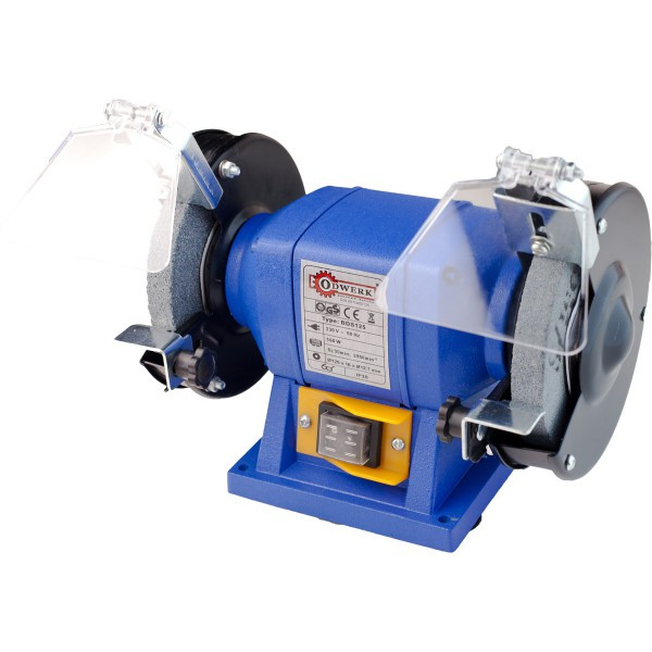 Заточувальний верстат Odwerk BDS 125 має оптимальний для побутового застосування за потужністю двигун, а його потужність складає 150 Вт. Такий двигун без проблем видає обороти 2950 об/хв, завдяки чому забезпечується висока продуктивність. Точило оснащено двома різними по зернистості колами, із зерном 36 і 60. Параметри самих кіл складають 125х16 мм, з отвором посадки 32 мм, але є перехідник на 12,7 мм.