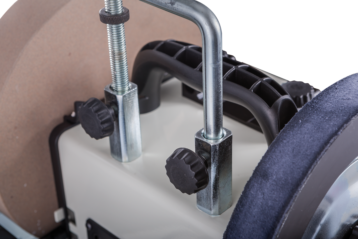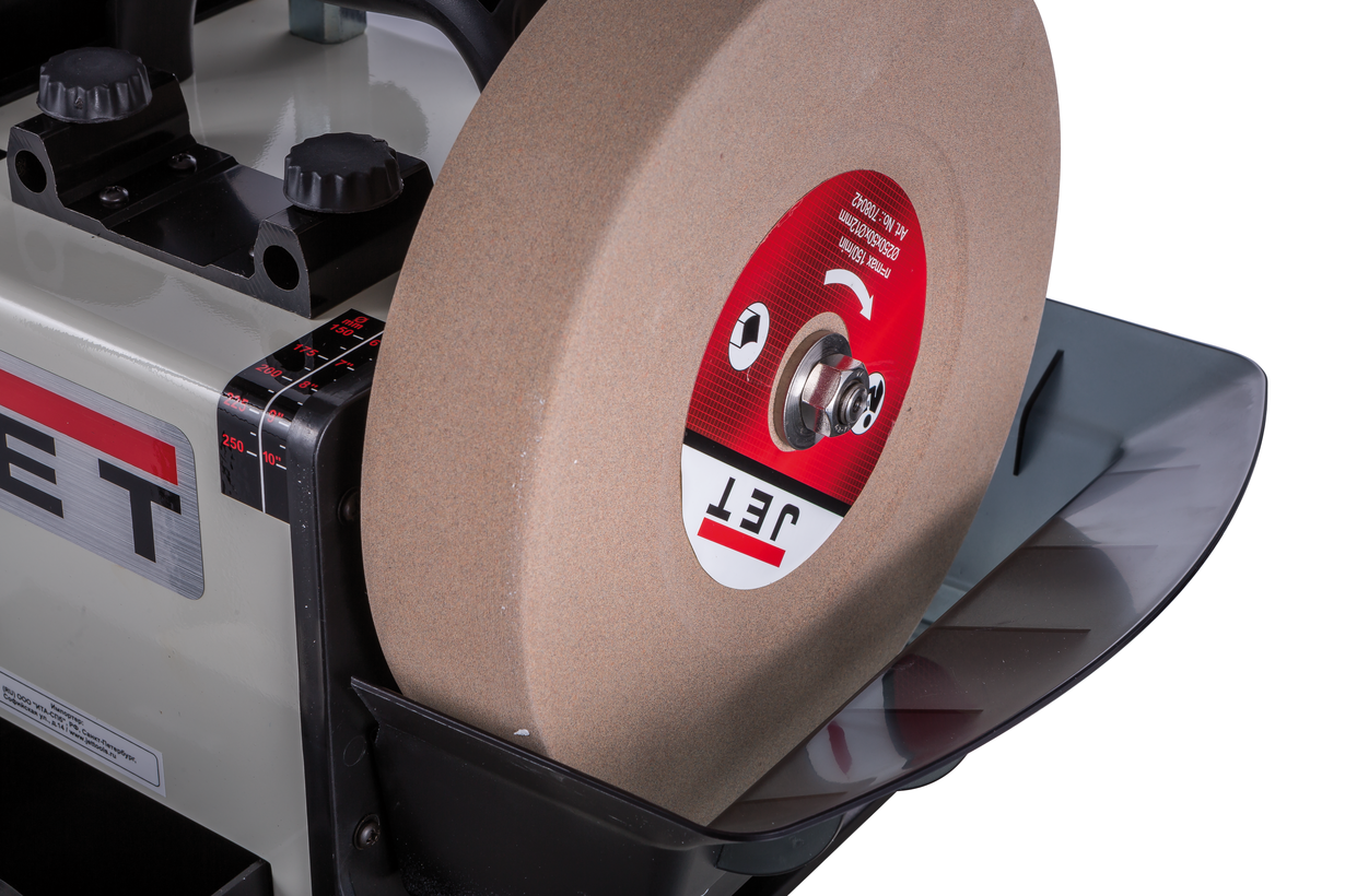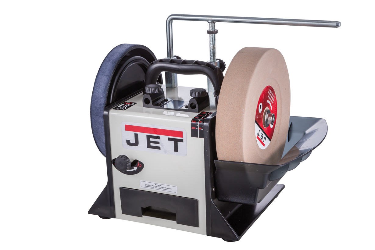 Заточувальний верстат JET JSSG-10 – це електроінструмент для заточування або полірування різних заготовок з водяною ванною. Шліфування відбувається без виникнення іскор та надмірного нагрівання поверхні, а низький рівень обертів забезпечує безпеку під час роботи. Регулювання швидкості обертання здійснюється за допомогою перемикача, вбудованого на лицьовій стороні верстата JET JSSG-10. Потужна основа надає стійкості інструменту, а гумові ніжки знижують рівень вібрації, що виникає. Для того щоб виставити найточніший кут заточування передбачений спеціальний кутовий калібр. У комплект поставки JET JSSG-10 входить опора, яка дає можливість кріпити елементи, що заточуються. Діаметр кола для шліфування становить 250 міліметрів, а діаметр додаткового шкіряного кола – 230. Компактні габаритні та невелика вага агрегату спрощують його зберігання та транспортування. Верстат заточувальної JET JSSG-10 купити - знайти інструмент з широкими можливостями.