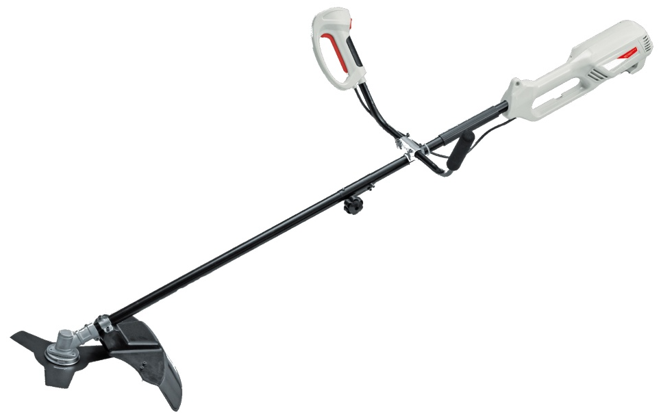 Підключіть тример до мережі 220 В через подовжувач відповідного перерізу та довжини. Відрегулюйте плечовий ремінь та велосипедну рукоятку під свій зріст. Плавний пуск забезпечить м'який старт без ривків. Працюйте в захисних окулярах, закритому взутті та щільному одязі. Стежте за кабелем, щоб він не потрапив під ріжучий елемент. При спрацюванні системи захисту від перевантаження — дайте двигуну відпочити перед продовженням роботи. Після роботи очистіть інструмент від залишків трави та зберігайте в сухому місці.