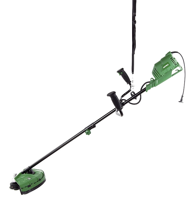 Електрична коса APRO 1600ss призначена для тривалої роботи завдяки живленню від побутової мережі — потужність стабільна, не залежить від заряду акумулятора чи рівня палива. Максимальна потужність до 1600 Вт дозволяє справлятися з трав'яними заростями та молодими пагонами кущів товщиною до 20 мм. Двигун розташований у верхній частині штанги, що забезпечує оптимальний баланс та захист мотора від вологи. Тример має повністю розбірну конструкцію зі збірною штангою та регулюваною рукояткою типу "велосипедне кермо" — інструмент адаптується під зріст будь-якого користувача та зручно транспортується. Металевий кожух захищає оператора від уламків, а резинові накладки на рукоятках ефективно гасять вібрацію.