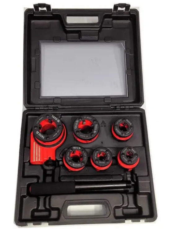 Набір клуп YATO YT-2900 високоякісний комплект для нарізки різьби труб. Комплект включає в себе клупи з храповим механізмом, що спрощує роботу і перемикає напрямок роботи.