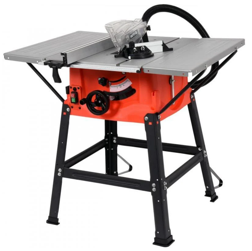 Загартоване залізо діаметром 254 мм забезпечує точне різання як м'якого, так і твердого матеріалу. Щит захищений від пошкоджень під час експлуатації. Пила має можливість розширювати стіл по обидва боки за рахунок затягування додаткових піків, посилених додатковими опорами. Завдяки цьому рішенню ми можемо безпечно працювати з більшими елементами. У комплект також входять: кутова лінійка, паралельна напрямна та штовхач, що підвищить як точність різання, так і безпеку. Набір ключів допоможе в швидкому збиранні та розбиранні окремих деталей.