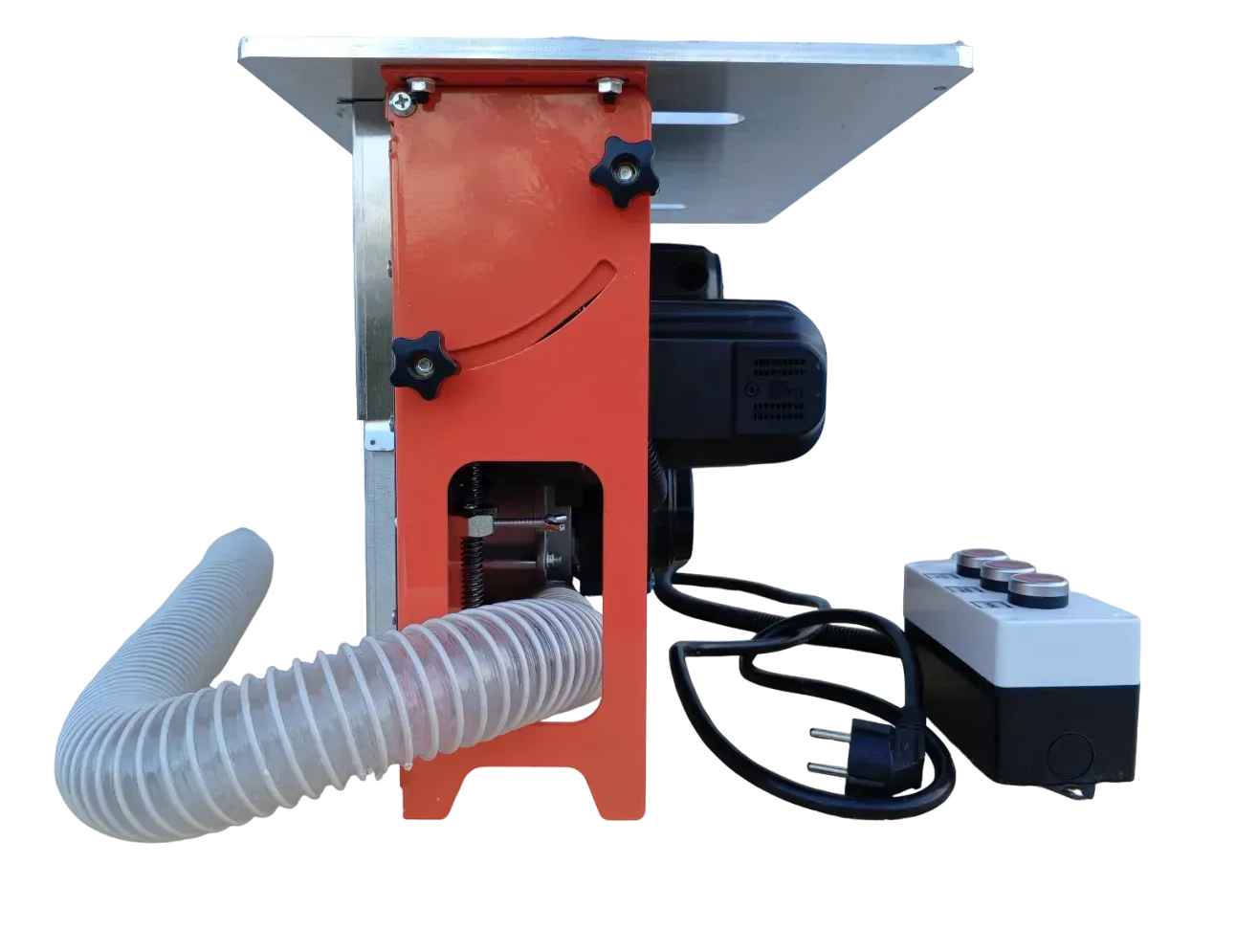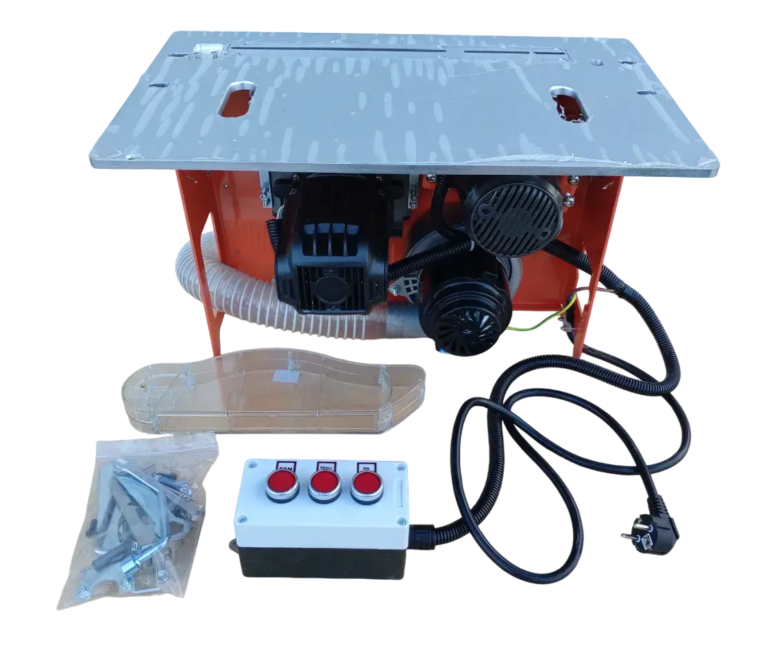 - Потужна система видалення пилу — вбудований стружковідсмоктувач з двигуном 1,2 кВт зберігає робочу зону чистою і безпечною.