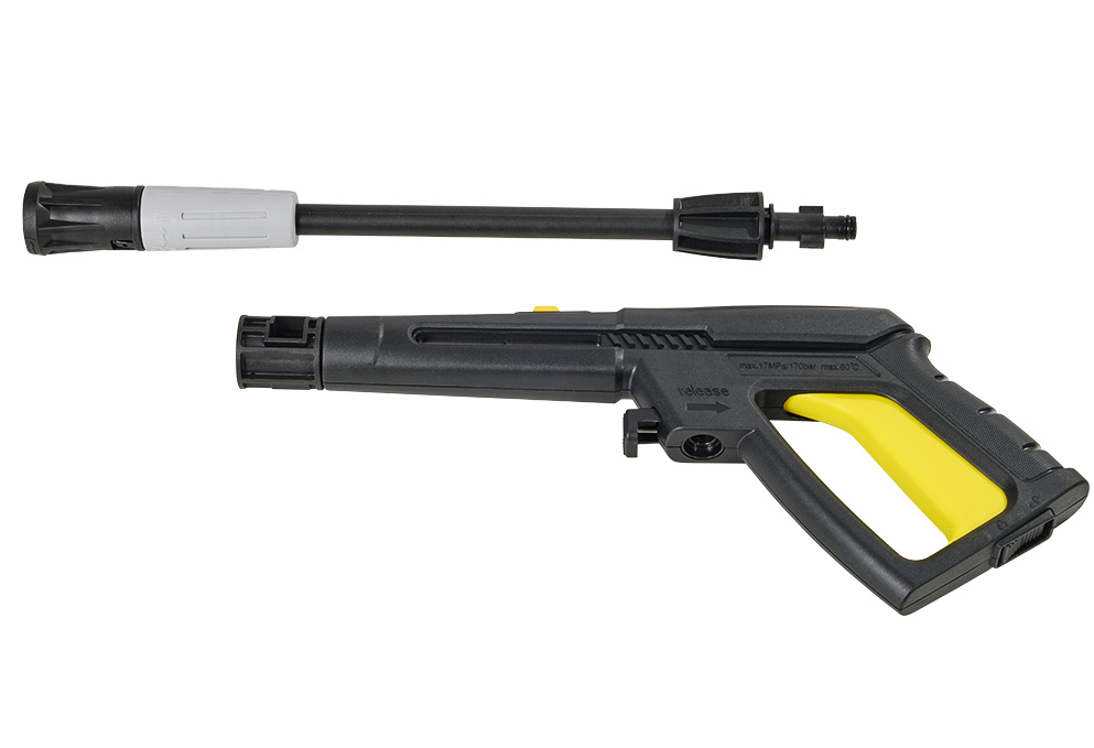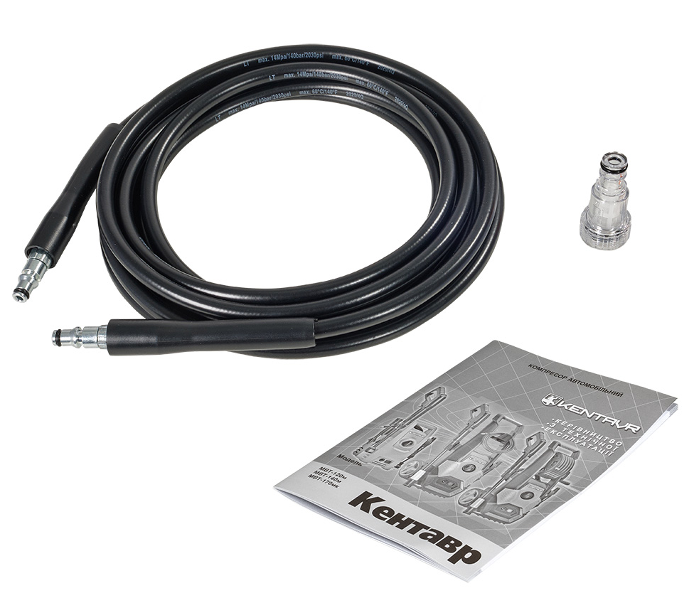 У комплектацію Кентавр МВТ-140м входить: пістолет високого тиску, подовжувач з розпиленням, шланг високого тиску (5 м), фільтр-перехідник для підключення вхідного шланга, голка для очищення форсунок.