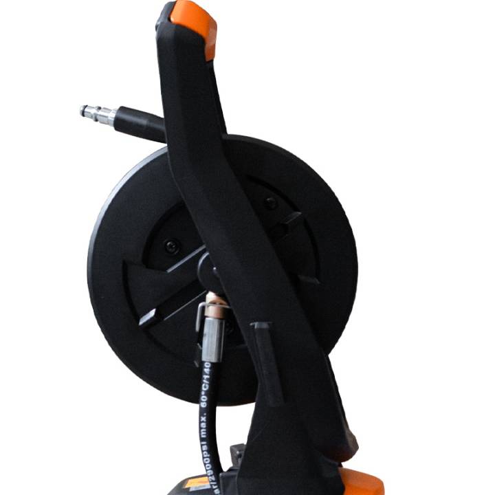 - Барабан для рукава високого тиску: Це одна з ключових зручностей цієї моделі. Барабан дозволяє акуратно зберігати шланг високого тиску, запобігаючи його сплутуванню. Це значно спрощує процес використання та зберігання мийки, підвищуючи комфорт роботи.