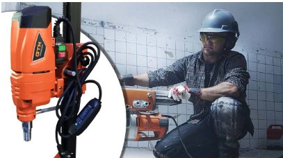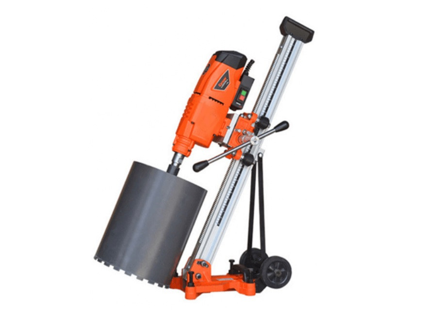 Бурильна установка GTM DK-182 - електроустаткування для мокрого буріння отворів у бетонних, кам'яних, цегляних та гранітних поверхнях за допомогою алмазних коронок. Ця модель фіксується на вертикальній стійці (станіні), яка входить до стандартної комплектації. Підключається до системи водяного охолодження і дозволяє робити отвори діаметром до 250 мм. Алмазна коронка кріпиться безпосередньо до шпинделя без використання патрона. Увага! Ця бурильна установка призначена лише для вертикального буріння. Сфера застосування: використовується для вертикального алмазного буріння під час будівництва будівель, аеродромів, злітно-посадкової смуги, тунелів, залізничних конструкцій і т.д. Переваги бурильної установки GTM DK-182 Редуктор працює в масляній ванні, що збільшує ресурс шестерень і підшипників У редукторі і двигуні використовуються надійні та якісні підшипники японського виробника NSK Адаптер дозволяє швидко підключити рідину для охолодження коронок. Двигун оснащений системою плавного пуску, яка збільшує ресурс роботи щіток двигуна. Технічні характеристики установки алмазного буріння GTM DK-182 Тип живлення: електромережа, 220 В : 250 мм Діаметр свердління цегла/блоки: до 250 мм Діаметр свердління бетон/залізобетон: до 182 мм Розмір хвостовика: 1 1/4" Швидкісні режими: 1 Швидкість шпинделя: 640 об/хв Тип патрона: шпиндель з різьбою Батьківщина торгової марки: Україна Країна-виробник: Китай Гарантія: 12 міс Комплектація Графітові щітки Анкерний болт Набір шестигранників Розвідний ключ Рожковий ключ Адаптер та шланг для підключення води Інструкція Бачок Гарантійний талон