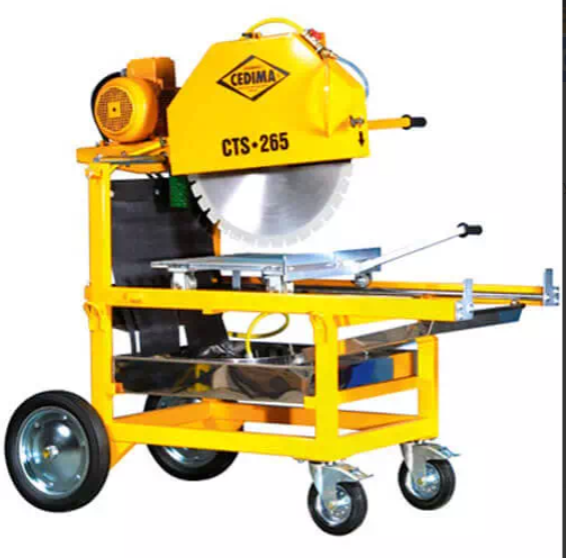 Верстат для різання кераміки, каменю та будматеріалів Виробник: Cedima (Німеччина) Каменерізний верстат Cedima CTS-265 з потужністю 5,5 мм, максимальною глибиною різу 265 мм, довжиною різу 500 мм і ∅ диска 650 мм, застосовується для різання крупногабаритних бетону, пористої або силікатної цегли. ТЕХНІЧНІ ХАРАКТЕРИСТИКИ Потужність, кВт 5,5 Напруга, 380 Частота, Гц 50 Струм, А 12 ∅ диска, мм 650 Посад. отвір, мм 25,4 Макс. глибина різу, мм 265 Макс. довжина різу, мм 500 Частота обертання, об / хв 1420 Ємність відра, л 50 Рівень звукового тиску, дБ 87 Рівень звукової потужності, дБ 104,9 Тип захисту двигуна приводного диска IP 54 Габарити (ДхШхВ) транспортні, мм ОСОБЛИВОСТІ Потужний трифазний двигун Гойдаюча ріжуча голова Знімна водяна ванна з нержавіючої сталі, легка чистка Роликовий стіл з важелем подачі Захисний бризковик Фіксовані рульові колеса і великі задні колеса для зручного транспортування НОК CEDIMA CTS -265 Артикул Найменування Потужність, кВт Довжина різу, мм Глибина різу, мм ∅ диска, мм Вага, кг Ціна, руб 30000224 Каменерізний верстат Cedima CTS-265 5,5 500 265 650 200