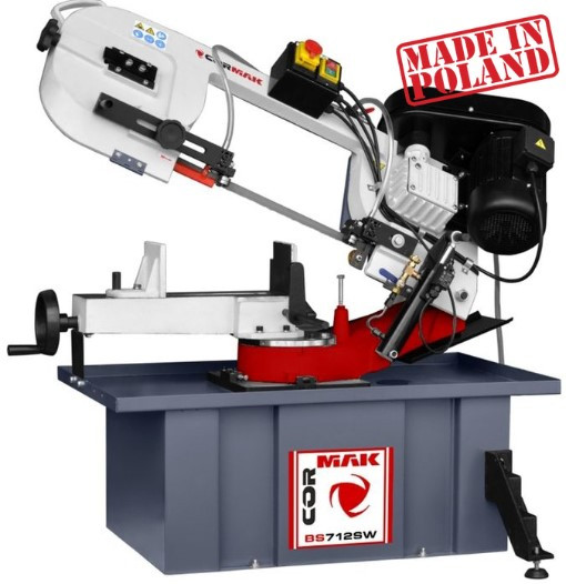 Технічний опис Cormak BS 712 SW: Стрічкова пила CORMAK BS 712 SW 20 мм Професійна стрічкова пила з поворотом ріжучої голови до 45°. Ідеальне рішення для слюсарних, виробничих та ремісничих майстерень. Дизайн та висока якість виготовлення, які зарекомендували собі протягом багатьох років, роблять його неперевершеним у своєму класі. Різак стрічкової пилки шириною 20 мм, його перевага в тому, що він рідше не тільки кольорові метали, але і добре справляється з нержавіючої сталлю. Рама злитого чавуну забезпечує жорсткість під час роботи та поглинає всі види вібрацій. Панель управління розташована на верхній частині ріжучої голови. Характеризується високою продуктивністю та простотою використання. Можливість різати під будь-яким углом у діапазоні від 45 до 90 градусів. Масивна конструкція виготовлена з профільованої сталі, важіль виготовлений з литого однорідного чавуну, що забезпечує стан дуже високу жорсткість і стійкість при різанні, що забезпечує точність різання і тривалу безперебійну роботу. Конструкція, а також використання ріжучої стрічки шириною 20 мм дозволяють повністю виконувати багатосерійні розрізи як профілів, так і цілісних деталей. Швидкість стрічки регулюється на ремінному приводі. Комплект поставки: стрічкова пила та пиляльне полотно. Параметри різу: Кут Круг Прямокутник Квадрат 0° Ø 205 мм 215 x 205 мм 205 x 205 мм 45°L Ø 150 мм 100 x 200 мм 130 x 130 мм 45°R Ø 140 мм 100 Напруга, В.: 230В Габаріті ШхДхВ, мм.: 1280 х 575 х 1140 мм Тип управління: гравітаційне ППК: Ні Потужність двигуна 1.1 кВт Вес, кг.: 145 Додатковий сервіс Установка|Сервісне обслуговування|Навчання Довжина пи. 2360 Ширина пиляльного полотна, мм.: 20 мм Товщина пиляльного полотна, мм.: 0.9 Швидкість руху пильної стрічки, м/хв.: 22/33/45/65 м/хв різання металевих профілів без іскор та з високою точністю. Купити стрічкову пилку по металу Cormak BS 712 SW в Україні вигідно для функції повороту пильної рами. Тиски нерухомо прикріплені до станини. Такий підхід дозволяє комфортно нарізати довгі заготовки під різними кутами, використовуючи для подачі невеликий простір цеху. Немає необхідності переміщати довгу заготовку навколо верстата, заважаючи роботі сусідніх ділянок. Професійна, дуже потужна та ефективна металообробна пила з поворотом пильної рами від -45° до +45°, типу Cormak BS 712 SW, заснована на перевірених роками рішеннях, робить її неперевершеною у своєму класі. Пильна консоль із профільованого чавуну забезпечує жорсткість під час роботи та поглинає всі види вібрацій. Панель керування розташована на кронштейні верстата. Стрічкова пила по металу Cormak BS 712 SW характеризується високою ефективністю та простотою використання. Це дозволяє виконувати різання у вертикальній площині і перпендикулярно осі матеріалу, що розрізається, або під будь-яким кутом в діапазоні від 45 градусів вліво до 45 градусів вправо. Заготовку можна подавати вручну або через будь-який пристрій, що подає. Опускання пильної рами при різанні здійснюється під власною вагою та обмежується двокамерним гідроциліндром. Правильна швидкість опускання пильної рами досягається завдяки клапану, що регулює потік олії між камерами. Масивна стабільна конструкція та станина, виготовлена з однорідного чавунного лиття, забезпечують машині дуже високу жорсткість та стійкість при різанні, що забезпечує точність різання та тривалу безаварійну роботу. Конструкція стрі