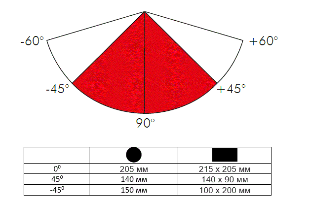 - Макс. розмір різання, круглий переріз під кутом -45°: 150
