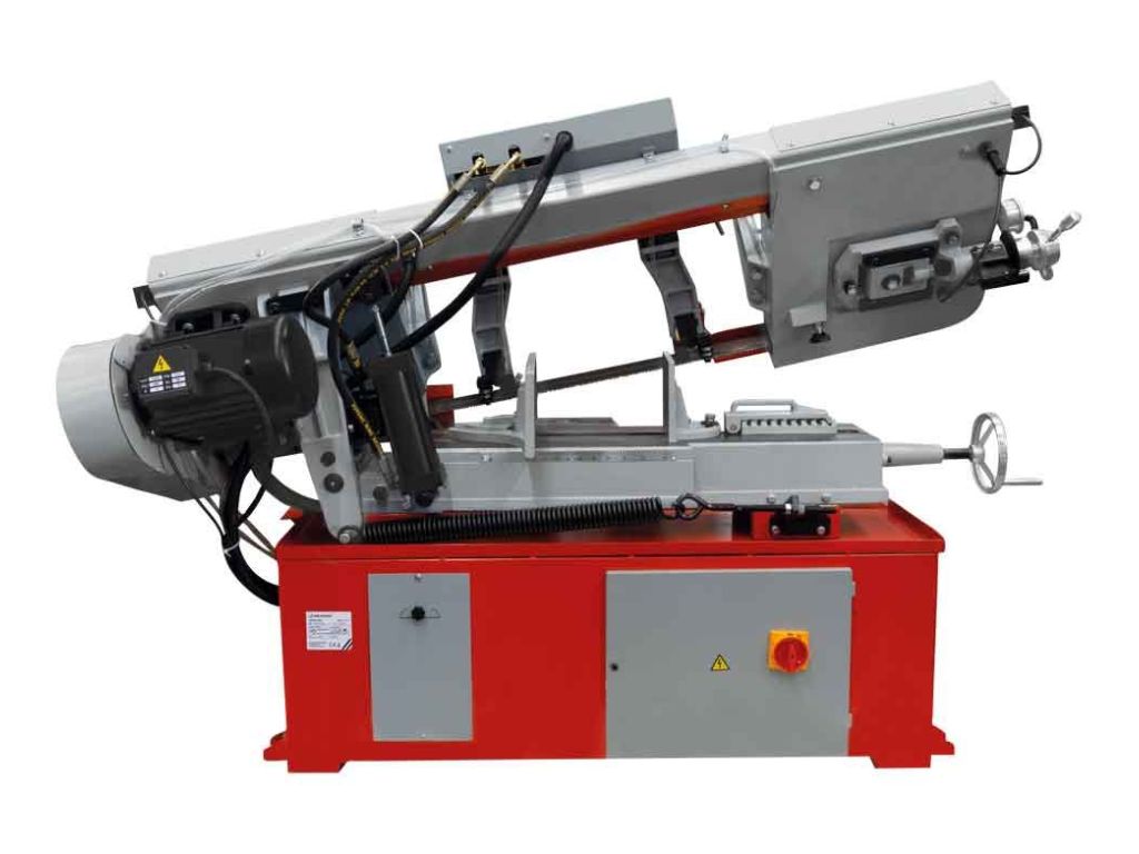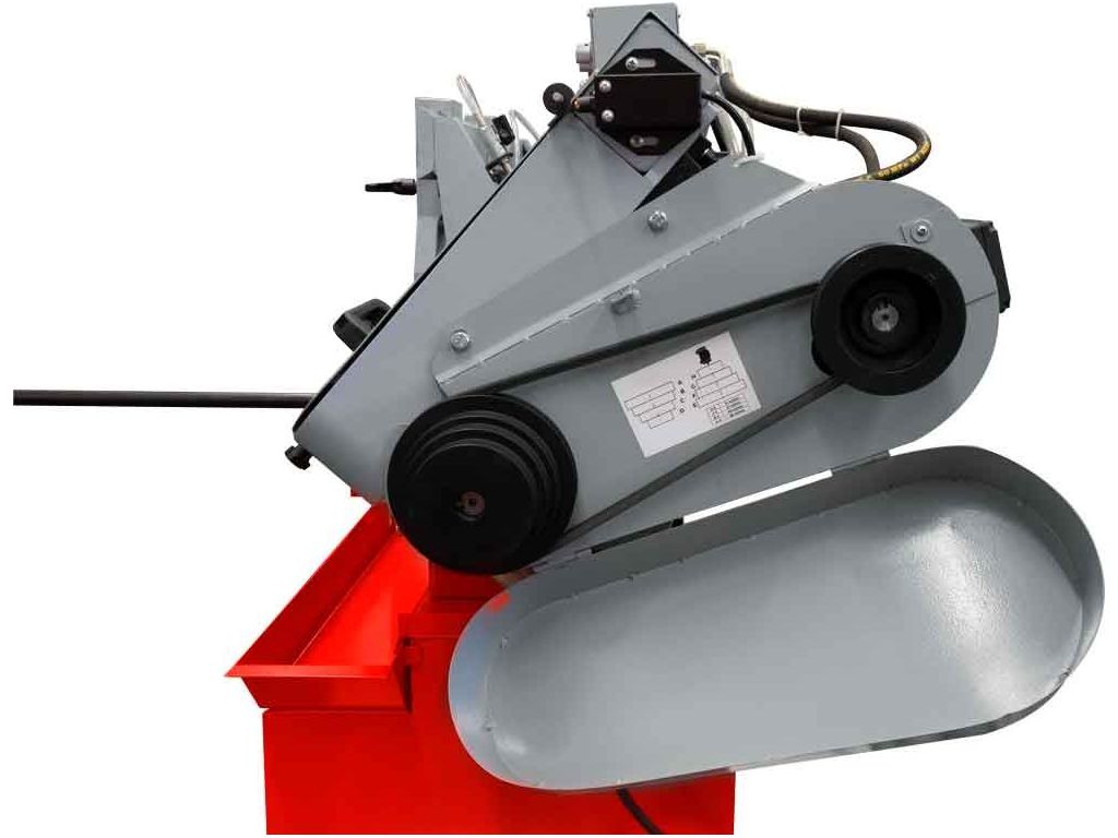 Ремінна передача:Даний верстат обладнаний ремінною передачею, регулювання швидкості відбувається за рахунок перекидання ременя на відповідний шків. Регулювання швидкості у стрічкових пилах по металу є важливою функцією, тому що вона має безпосередній вплив на якість та швидкість роботи з заготовкою. Регулювання швидкості дозволяє операторові адаптувати швидкість різання до конкретного матеріалу, що безпосередньо впливає на ефективність та якість обробки. Підбір відповідної швидкості допоможе уникнути перегріву полотна чи заготовки, що сприяє тривалішому терміну служби полотна та очікуваному результату від роботи, також регулювання допомагає уникнути зайвої вібрації.