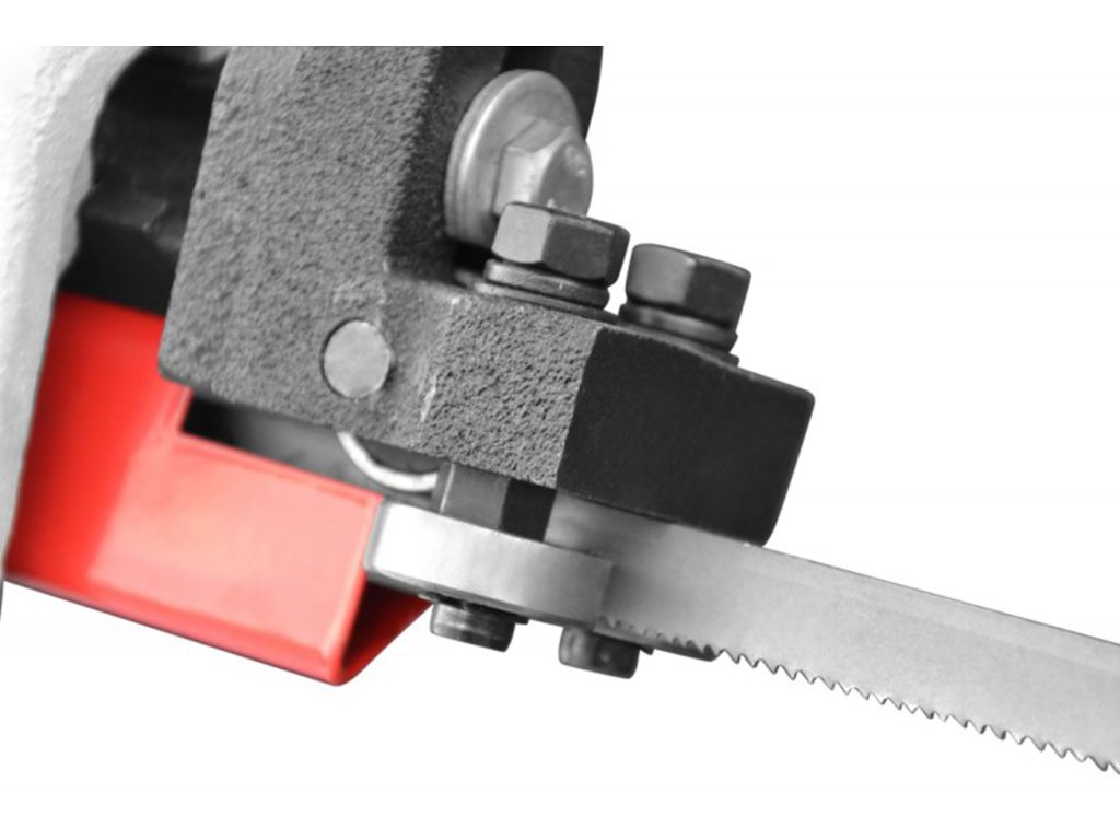 Здатність різати під кутами є незамінною функцією верстата, дана модель обладнана поворотною головою. На відміну від верстата з поворотним тиском, на верстаті з поворотною ріжучою головою заготовку не потрібно повертати навколо верстата. Це дуже актуально для заготівлі великої протяжності. Також поворотна голова дозволяє досягти кращої точності кута різу. Поворотну голову гармонійно доповнює ексцентриковий тиск тиску, що дозволяє після регулювання тиску швидко зафіксувати або відпустити заготовку без повторного регулювання, що збільшує ефективність роботи верстата.
