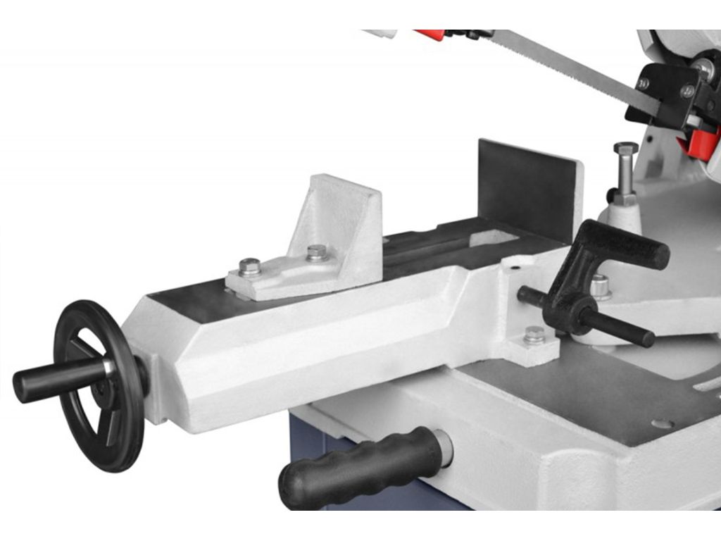 Даний верстат обладнаний ременною передачею, регулювання швидкості відбувається за рахунок перекидання ременя на відповідний шків. Регулювання швидкості в стрічкових пилках по металу є важливою функцією, оскільки вона безпосередньо впливає на якість і швидкість роботи з заготівлею. Регулювання швидкості дозволяє оператору адаптувати швидкість різання до конкретного матеріалу, що безпосередньо впливає на ефективність та якість обробки. Підбір відповідної швидкості допоможе уникнути перегріву полотна або заготівлі, що сприяє тривалішому термін служби полотна та очікуваний результат від роботи, а також регулювання допомагає уникнути зайвої вібрації.