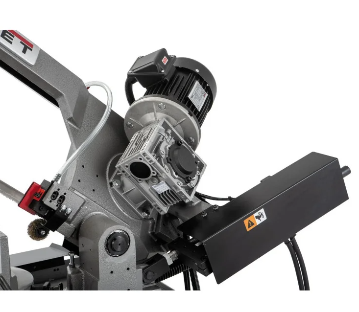 Стрічковопильний верстат оснащений потужним двигуном в 1,1 кВт з надійним редуктором, що передає високий крутний момент, для промислової експлуатації та режимом роботи 24/7. Швидкість руху стрічкового полотна вибирається з двох встановлених швидкостей 36 і 72 м/хв для пиляння різних матеріалів.